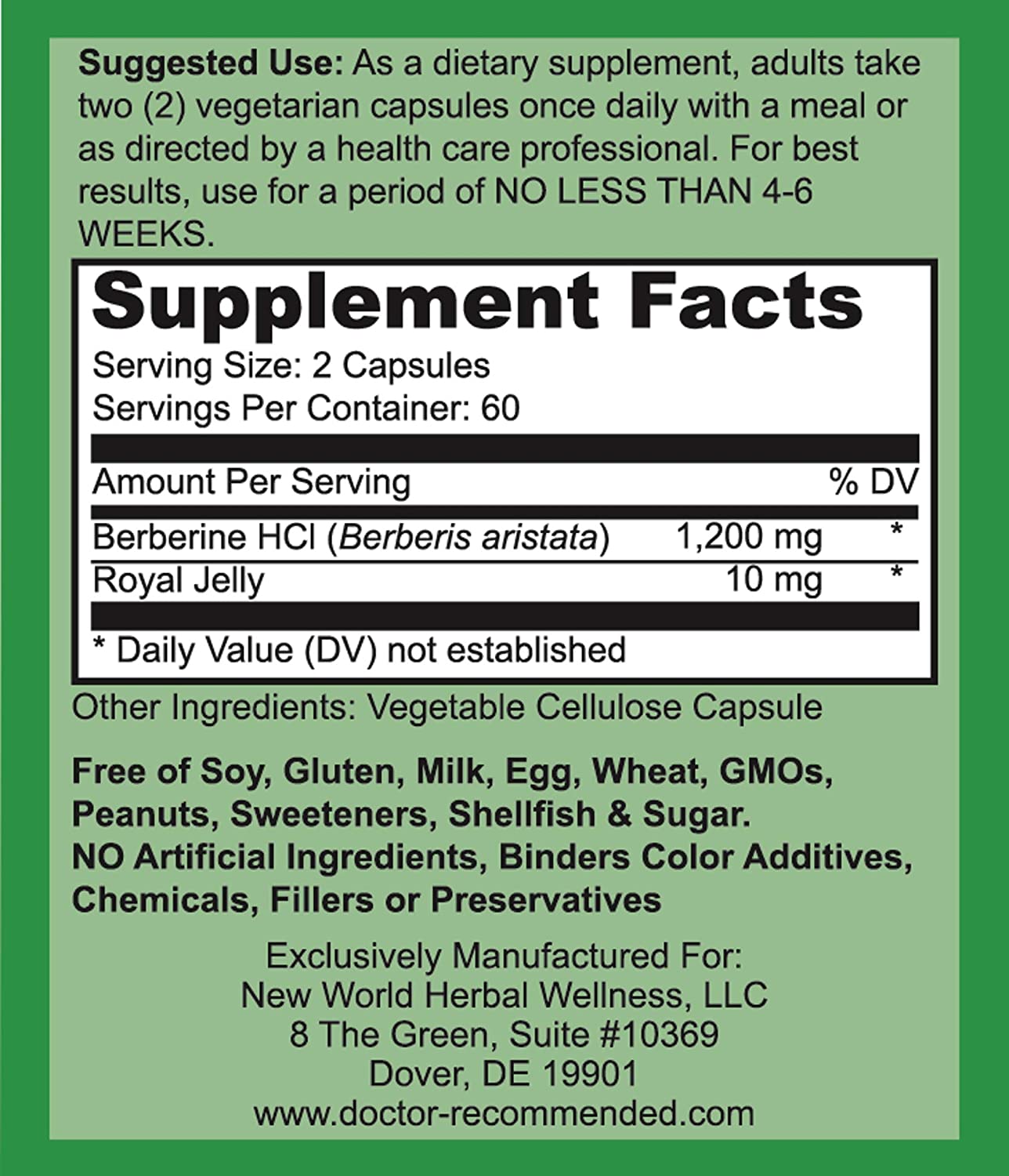 HIGH QUALITY! SINGLE INGREDIENT SUPPLEMENT: Our Doctor Recommended Pure Berberine is made with only one main ingredient Berberine HCI and vegetable cellulose capsules. With Doctor Recommended it is our mission to make sure you will always get the highest-quality, pure, and safe products that help our customers to live happier and healthier lives